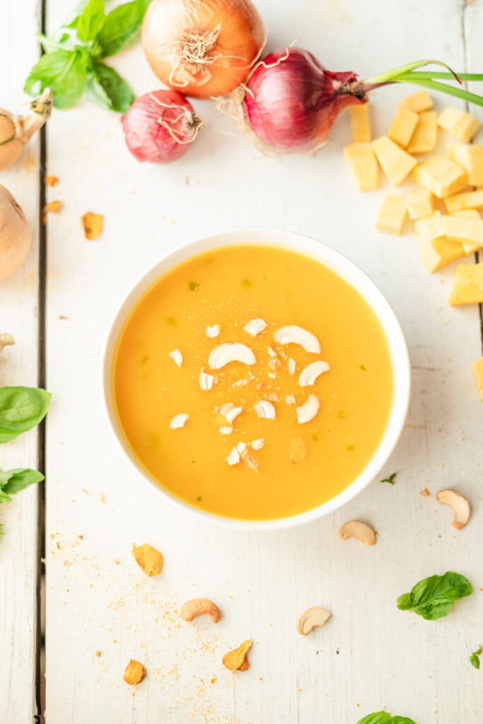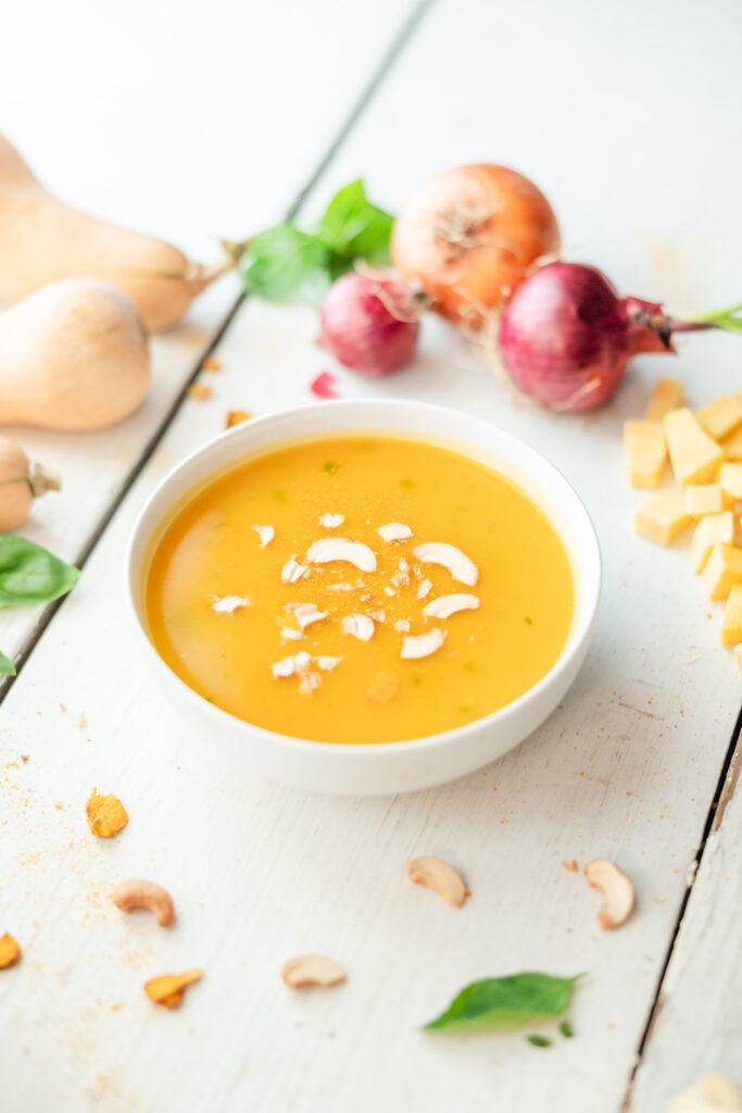 This soup brings surprisingly summery notes to the traditional fall flavors with the addition of freshly chopped basil. Basil adds an unexpected lift and enhances the sweet butternut squash flavor.