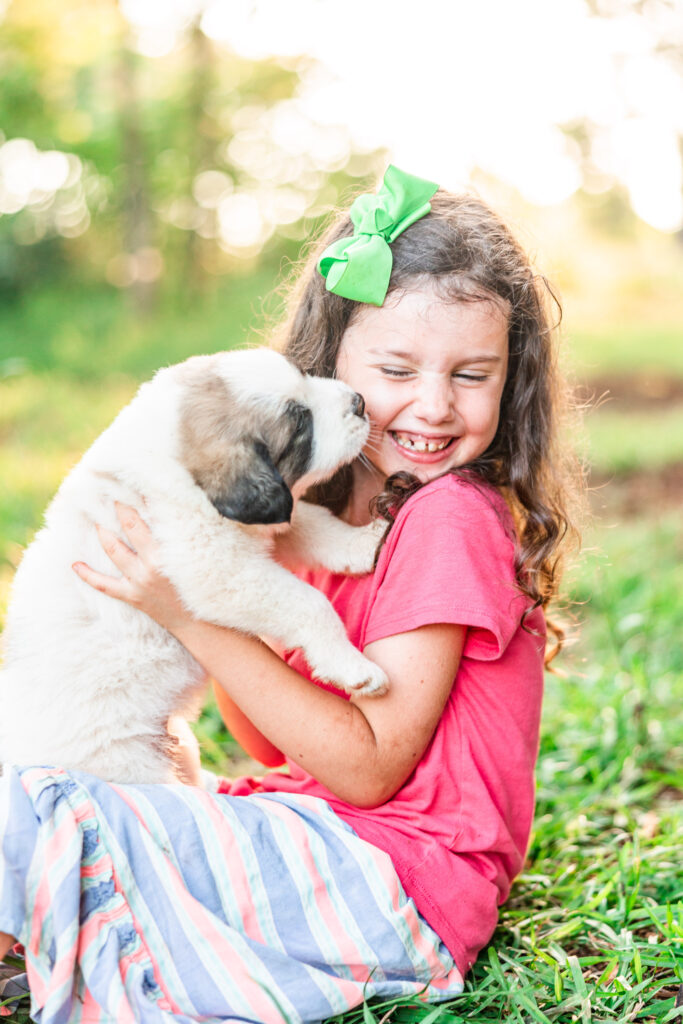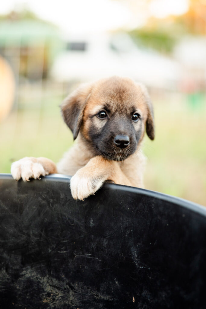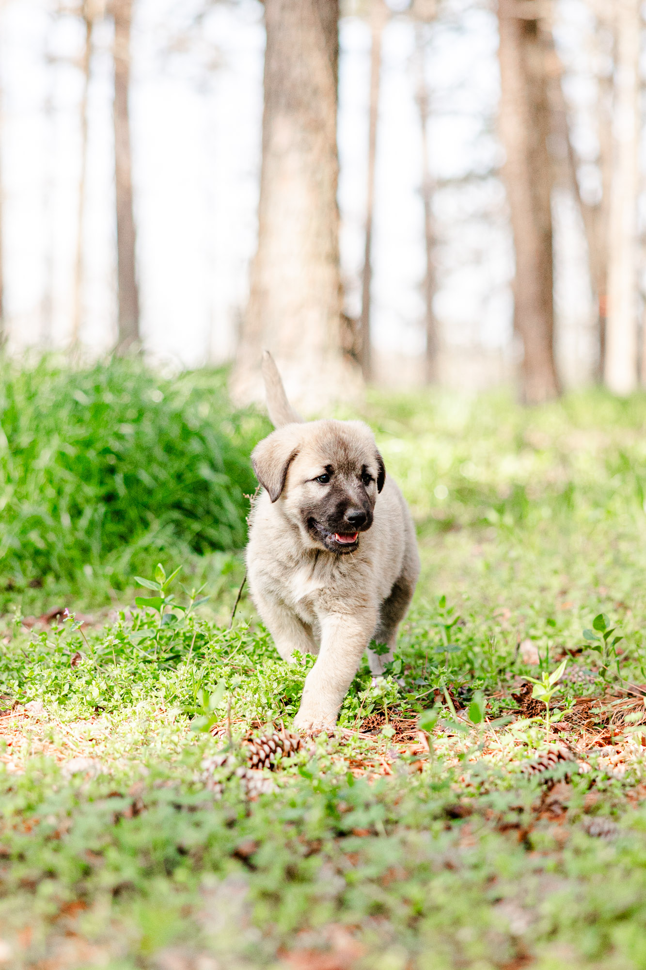 Our puppies are bred from working Livestock Guardian dogs who actively guard and protect the livestock on our farm. Both our adult male and female LGDs are fully trained to protect from outside predators, while providing a safe environment for our flock of goats, sheep, and lambs. Starting from a young age, our puppies learn gentle and nurturing instincts from living alongside their working parents.